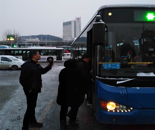 城市客運方面  市公交公司迅速啟動雨雪天氣應急預案,2819:00開始,各級安管人員迅速到達各重要路段、站點進行車輛、乘客引導工作,通過GPS系統(tǒng)不定時發(fā)送語音安全提醒,警示駕駛員減速慢行、注意安全。同時密切關注徐州站、徐州東站客流情況,及時調配車輛,確保乘客走好走了,8日晚因高鐵晚點,10路延時服務值次日2:00左右,臨時增加約13個班次。29日凌晨4:00左右,全體安管人員現場指揮發(fā)車,逐車交代駕駛員注意觀察路面、減速慢行。隨后安管人員分組奔赴各道路查看路面情況,對一些結冰路面進行撒鹽融雪,共撒鹽約2噸,確保車輛安全通行。出租方面,為保障高鐵站旅客能夠及時換乘,28日晚10009日凌晨100,市運管處及時調度指揮,共保障出租運力291輛,公交、出租合力有效保障了高鐵換乘旅客出行不受雪天影響。