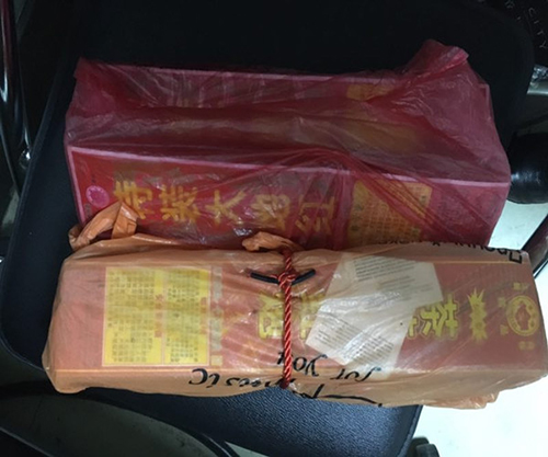 圖為汽車總站安檢發(fā)現(xiàn)的鞭炮