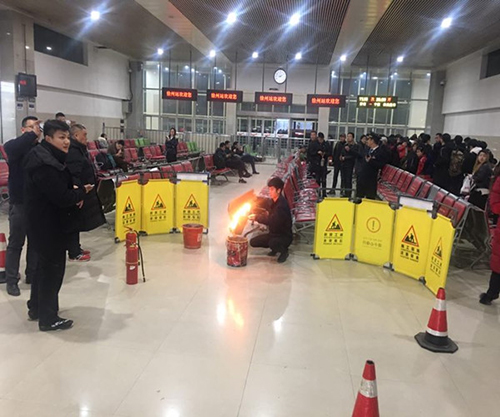 圖為火車站消防演練現(xiàn)場(chǎng)