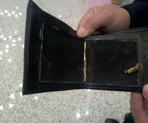 圖為機(jī)場(chǎng)安檢人員查獲的錢包式打火機(jī)