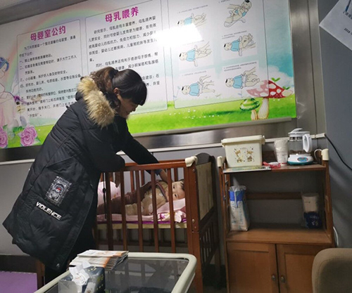 圖為女乘客在汽車總站母嬰室照顧孩子