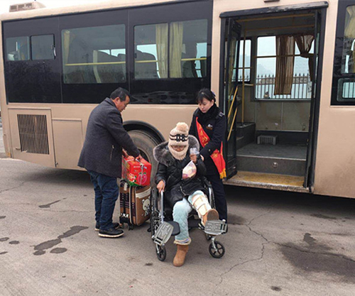 特殊旅客貼心服務(wù)暖人心。各汽車客運站不僅對母嬰和軍人出行服務(wù)周到,對行動不便的特殊旅客,也用貼心的服務(wù)溫暖乘客的旅途。“潘宇,西出口這邊有位腿腳不便的重點旅客,需要前去接應(yīng)。”212日上午9:15左右,徐州汽車客運東站西出口導(dǎo)乘服務(wù)班孫瑞通過對講機,把腿部受傷的李女士的情況告訴了愛心飛揚服務(wù)班潘宇。“旅客已經(jīng)坐上了車站的接駁車,大概3分鐘后到站,需要輪椅幫扶。”