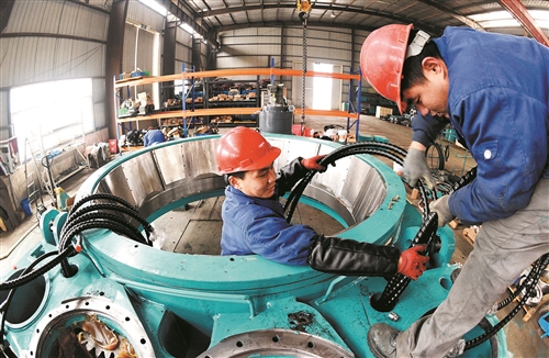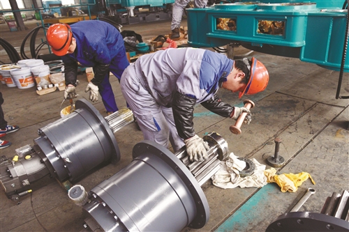 3月2日,在泉山經(jīng)濟(jì)技術(shù)開發(fā)區(qū),徐州盾安重工機(jī)械制造有限公司裝配車間,不同功能的機(jī)械配件在工人手中安裝、組合、調(diào)試,小零件拼成“大塊頭”,成為一臺臺令人稱奇的“變形金剛”。