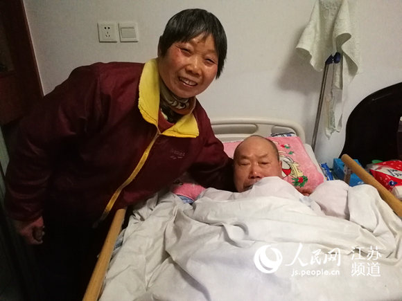 錢學(xué)園老人和女兒在一起,其女兒再三感謝政府照護(hù)險(xiǎn),減輕了一家人的負(fù)擔(dān)。記者王繼亮攝