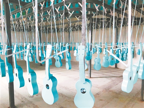 6月25日,記者在大風(fēng)樂器工廠看到,在上千平方米的噴漆廠房里,機器人正在噴漆,半小時不到,3000把吉他就噴好漆了。