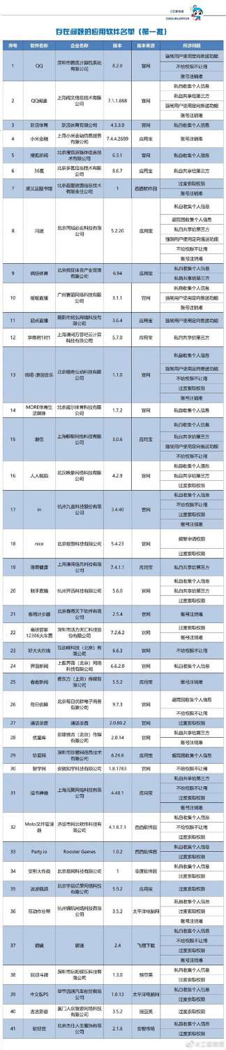 截至目前,尚有41款A(yù)PP存在違規(guī)收集、使用用戶個(gè)人信息、不合理索取用戶權(quán)限、為用戶賬號(hào)注銷設(shè)置障礙等問(wèn)題(詳見附件),未完成整改。上述APP應(yīng)在12月31日前完成整改落實(shí)工作,逾期不整改的,我部將依法依規(guī)組織開展相關(guān)處置工作。
