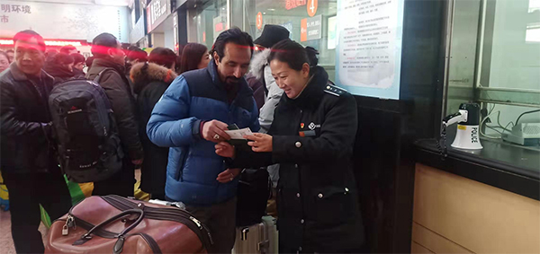 汽車客運總站:近日,徐州汽車客運總站的售票廳內(nèi)來了一個外國友人,他不斷的撥弄手機(jī),看上去有些煩躁。他的舉動引起了正在大廳巡視的老黨員羋莉的注意。羋莉主動上前進(jìn)行詢問,在得知這位外國友人是來自巴基斯坦,因為馬上就要過年了,他也想回到自己的國家與家人團(tuán)聚,一起過一個中國年。由于語言不通,這給他的出行帶來了很多的不便。羋莉為防止幫助旅客買錯票,便運用翻譯軟件與外國友人做最后的確認(rèn)。購票后,羋莉防止該名旅客做錯候車區(qū),便一路將其送至候車區(qū),到達(dá)檢票口后,旅客為羋莉豎起大拇指!