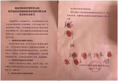 開戰(zhàn)伊始,閘管所黨支部開展應(yīng)對疫情黨員承諾書簽字儀式,全體黨員干部紛紛寫下請戰(zhàn)書,主動簽署《疫情防控阻擊戰(zhàn)黨員承諾書》,分成兩個管控黨員突擊隊,分別戰(zhàn)斗在彭城高速出入口監(jiān)測站、船閘遠(yuǎn)調(diào)站服務(wù)窗口,24小時開展疫情檢疫防控工作。行風(fēng)辦主任肖利主動申請擔(dān)任黨員第一突擊隊隊長;運調(diào)股長沈淼正在休假期間,得知情況后主動放棄休假,第一時間表示“我是黨員,必須沖在第一線。”;工會副主席鄭毅主動請戰(zhàn):“我的身體好,請組織優(yōu)先考慮,堅決服從組織的安排。”入黨積極分子秦浩涵,第一時間書面請戰(zhàn)高速路彭城出入口執(zhí)勤任務(wù),在得知防護用品十分匱乏后,個人自費一千余元購買KN95口罩40個,捐獻給一線執(zhí)勤人員。