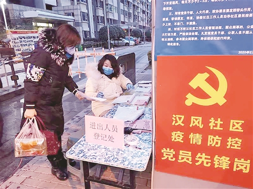 徐州市工會(huì)干部學(xué)校黨支部21名黨員自備防護(hù)器具,按所在轄區(qū)組成“黨員先鋒服務(wù)隊(duì)”加入到戰(zhàn)“疫”中來(lái)。圖為黨員志愿者在東南郡社區(qū)參與防疫宣傳、測(cè)量體溫、秩序維護(hù)等。(李麗)