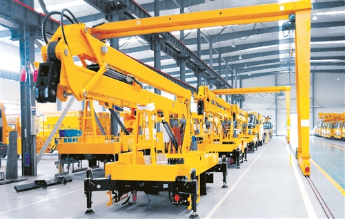 海倫哲行業(yè)領(lǐng)先的高空作業(yè)車裝配線。徐報融媒記者 季芳 通訊員 馮鈺茹 攝