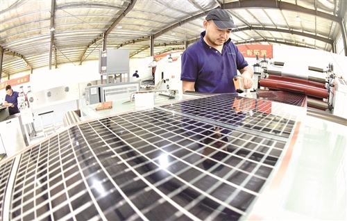 在新沂開發(fā)區(qū)江蘇宥拓新材料有限公司的車間內(nèi),一種寬約40厘米、類似相機膠卷的灰黑色薄膜在流水線上被加工出來。