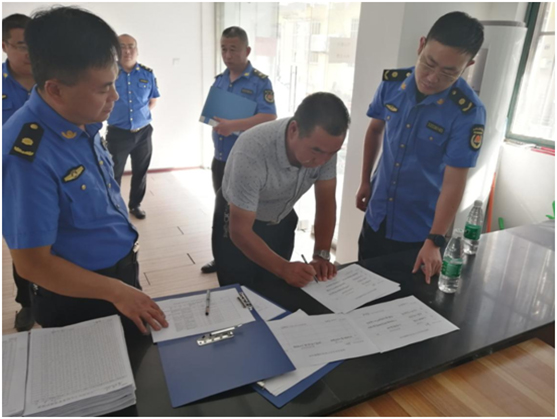 檢查人員對(duì)企業(yè)存在隱患下達(dá)整改通知書(shū)。