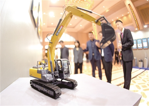 參加合作峰會的嘉賓參觀徐工微型展臺。