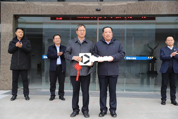 徐工基礎(chǔ)工程機(jī)械事業(yè)部總經(jīng)理、黨委書記孔慶華向客戶交付象征產(chǎn)品的“金鑰匙”