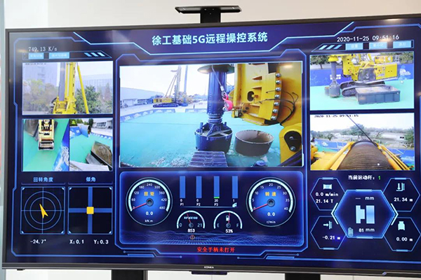 5G遠(yuǎn)程操控開始,在顯示器的大屏上能看到徐工XR450E的,桅桿角度、壓力、扭矩等關(guān)鍵數(shù)據(jù),打火,加到工作轉(zhuǎn)速聽機(jī)器發(fā)動(dòng)機(jī)聲音,是否有身臨其境的效果。