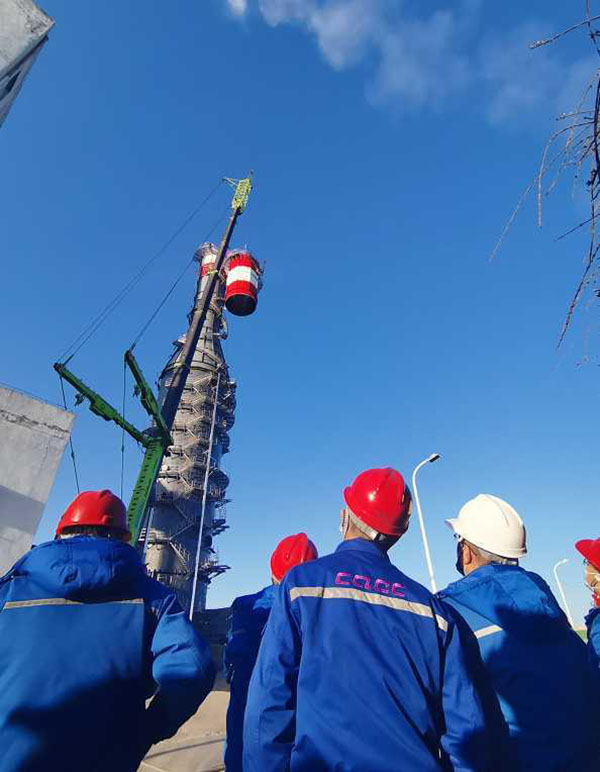 “牛年第一吊”,順利完工!陜西長青能化公司總高度達90米的新增脫硫塔順利吊裝就位,標志著該公司工程量最大、難度系數(shù)最高的新增脫硫塔主體工程安裝完成。