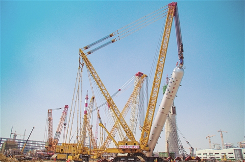 徐工四千噸級履帶起重機(jī)在連云港盛虹煉化項目現(xiàn)場吊裝。徐報融媒記者 王正喜 通訊員 吳琦 權(quán)佳 攝