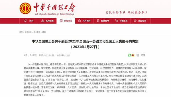 Ta們?cè)吔畡?chuàng)業(yè) 獲評(píng)“全國(guó)工人先鋒號(hào)”