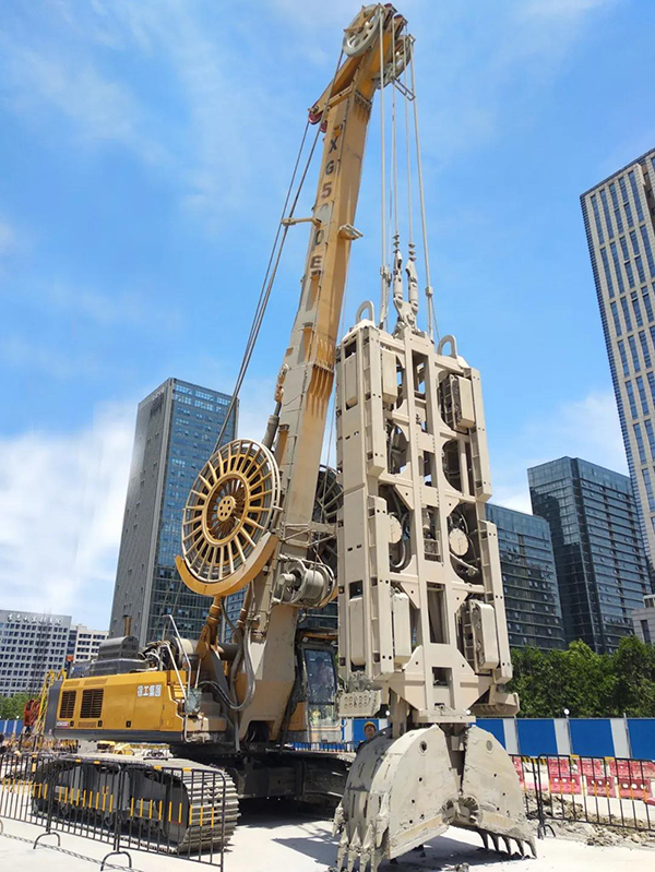 考慮到濟南軌道交通3號線線路地質(zhì)條件、施工環(huán)境極為復(fù)雜,項目方選用性能一流、施工經(jīng)驗豐富的徐工XG500E連續(xù)墻液壓抓斗作為“銅墻鐵壁”的打造者。