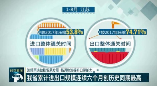聚焦企業(yè)通關過程中的卡點堵點,今年南京海關持續(xù)推進制度創(chuàng)新,將一體化改革從通關環(huán)節(jié)擴大到審批、監(jiān)管、物流等全領域,提升口岸通關效率。1-8月,江蘇進口、出口整體通關時間較2017年分別壓縮了53.8%、74.71%。
