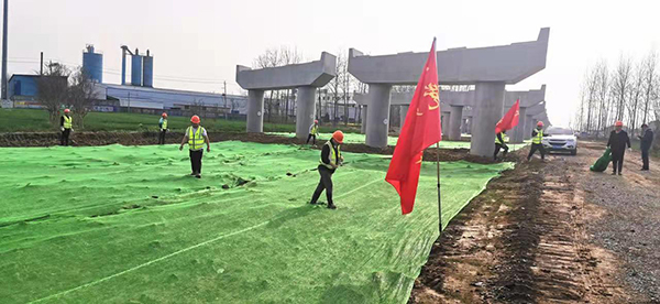 根據(jù)宿連高速項目建設(shè)指揮部“邊建邊綠”的工作部署,宿連高速4標(biāo)項目黨支部根據(jù)各階段施工情況,適時組織項目廣大黨員干部和團(tuán)員青年對所轄主線上跨S245大橋、大澗河大橋和主線上跨X151大橋下及沿線便道進(jìn)行灑水降塵、清撿垃圾、播撒草籽和綠網(wǎng)覆蓋,確保項目建設(shè)與綠色環(huán)保同步進(jìn)行。