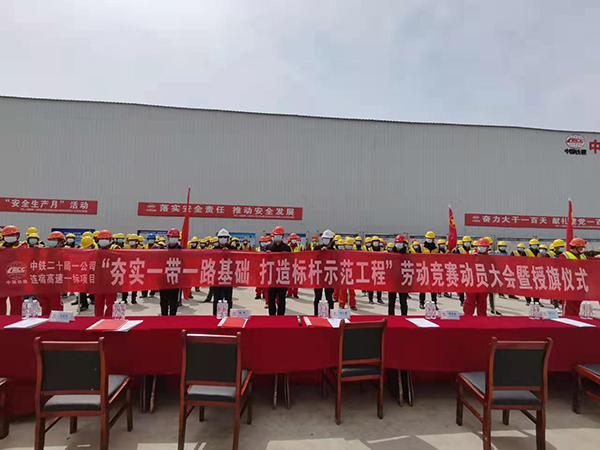 黃淮網(wǎng)(陳中璽) 為鼓舞員工建設熱情,提高項目施工生產(chǎn)能力,4月1日,中鐵二十局一公司連宿高速一標項目開啟“夯實“一帶一路”基礎打造標桿示范工程”勞動競賽動員大會暨授旗儀式。