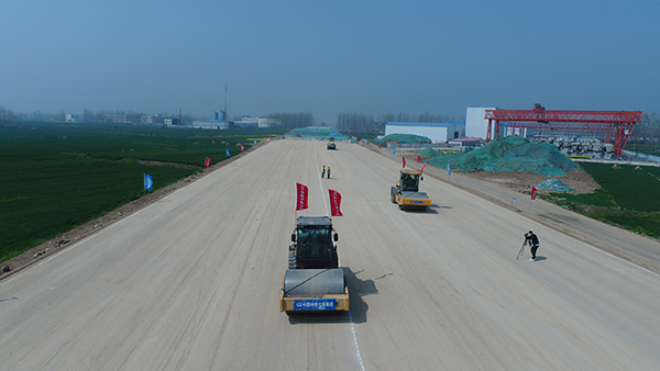 春風四月無覓處, 一襲蔥蘢蕩薄紗。中鐵七局連宿高速4標路基填筑施工、箱梁預制架設、路渠改移征遷現(xiàn)場一派忙碌,與田間麥浪、路鄰樹枝的搖曳聲遙相呼應,恰是春律跌宕起伏。