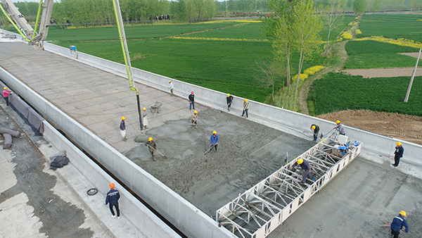 預制箱梁班組利用近期有利天氣,從鋼筋綁扎定位、梁模安裝調差、混凝土澆筑流速、塌落度控制和梁面收整拉毛等各個環(huán)節(jié)入手,形成穿插流水作業(yè)。加快鋼筋模板安裝、箱梁澆筑養(yǎng)生、檢測張拉封錨、梁臺轉換吊裝和運輸出廠架設,確保既定節(jié)點按期兌現(xiàn)。在沿線改路改渠施工現(xiàn)場,征拆人員的解說聲、技術人員的放線聲、被征村民的爭吵聲、機械施工的挖筑聲混成一片。路寬渠深既要滿足人車通行和農田灌溉,又要保障即改即通不使沿線村民出行受阻和灌溉水流不通,盡量確保村民生產生活不受施工作業(yè)影響。