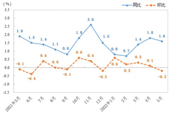 5月,山東CPI(居民消費(fèi)價(jià)格指數(shù))同比上漲1.6%,漲幅較上月回落0.2個(gè)百分點(diǎn);環(huán)比下降0.2%。當(dāng)月價(jià)格變動(dòng)的主要影響項(xiàng)集中于鮮菜、豬肉、糧食、能源等。隨著應(yīng)季蔬菜大量上市,加之物流暢通,鮮菜價(jià)格上漲幅度明顯回落;豬肉價(jià)格同比下降24.7%,降幅較上個(gè)月明顯收縮,因?yàn)?月出欄總量有所減少,收儲(chǔ)政策托市效果顯現(xiàn),環(huán)比看豬肉價(jià)格上漲6.6%,后續(xù)價(jià)格看暖;輸入性通脹壓力更加顯現(xiàn),受國(guó)際糧價(jià)高位運(yùn)行影響,糧食價(jià)格同比上漲5.7%,汽油和柴油價(jià)格均出現(xiàn)進(jìn)一步上漲。