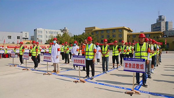 演練現(xiàn)場設(shè)置在中鐵二十局集團XM-TJ4標項目經(jīng)理部,全體演練人員精神抖擻、整裝待發(fā),隨著現(xiàn)場指揮開始演練命令的發(fā)布,各項實戰(zhàn)演練正式開始:
