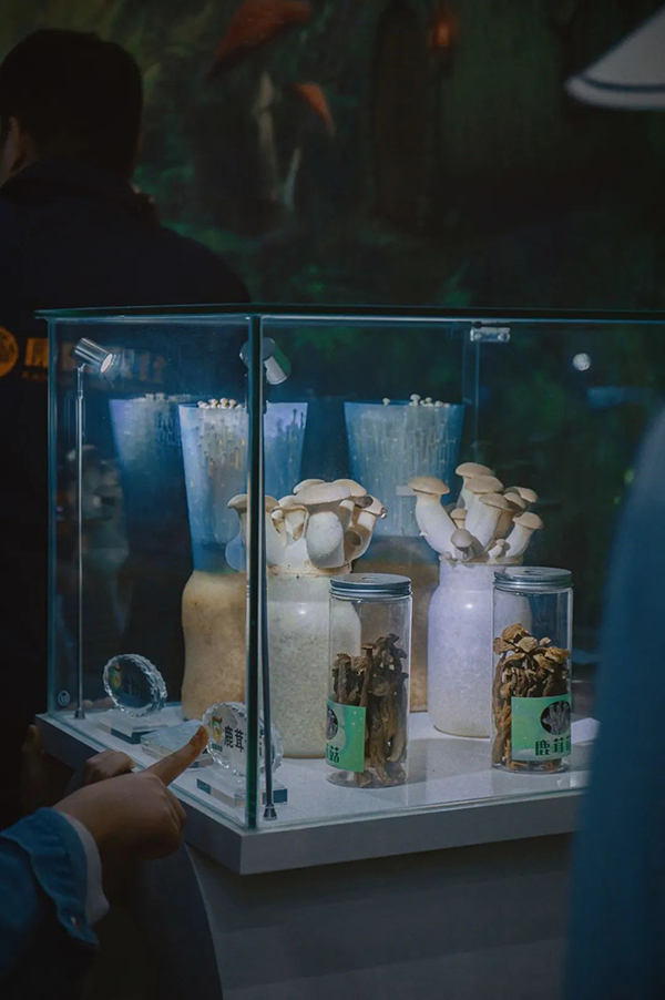 在食用菌產(chǎn)業(yè)園的智能出菇房內(nèi),金針菇、杏鮑菇、草菇...順應(yīng)自然生長環(huán)境長在立體層架上。