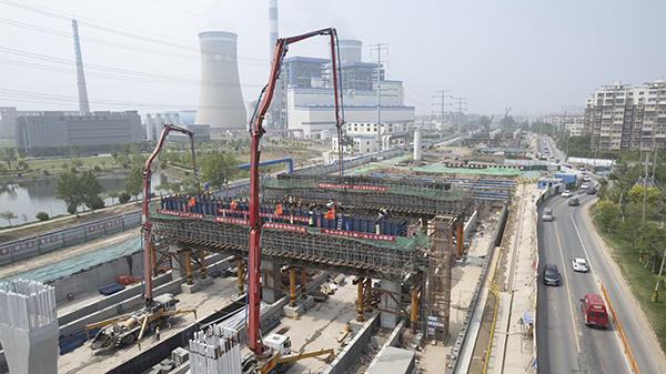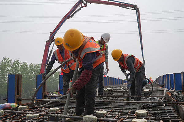 黃淮網(wǎng)(張滿平 楊道賢 李坤) 4月20日,經(jīng)過(guò)6小時(shí)的連續(xù)澆筑,由中鐵上海工程局承建的徐豐公路快速化改造工程(涉鐵段)首榀蓋梁順利澆筑完成,標(biāo)志著項(xiàng)目正式開(kāi)始蓋梁施工作業(yè),為后續(xù)的箱梁架設(shè)作業(yè)奠定了堅(jiān)實(shí)基礎(chǔ)。