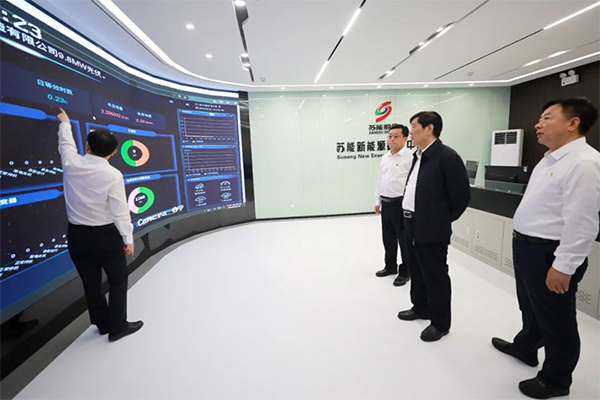 走進蘇能新能源數字中心,馮興振點開位于豐縣的徐州冠華機械制造公司光伏項目現場視頻,遠程觀看項目實景,并通過中心大屏了解項目實時運行情況。他強調,要堅持“內部全面落地、遍及江淮大地、走向全國各地”思路,大力發(fā)展新能源,運用數字信息技術推動產業(yè)提檔升級,加快打造光伏、風電、儲能、綜合能源服務等新能源產業(yè)集群。