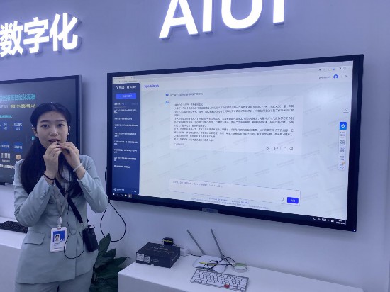 在科大訊飛人工智能體驗(yàn)館,工作人員在講解訊飛星火認(rèn)知大模型