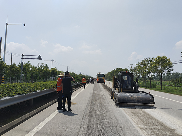 在養(yǎng)護現(xiàn)場,觀摩團觀摩了104國道銅山段“速力達”新材料修補路面裂縫現(xiàn)場,518國道豐縣段冷補料+抗裂貼施工現(xiàn)場, 518國道沛縣段車轍精銑刨施工現(xiàn)場,并針對應用場景、施工控制要點進行了講解和交流。