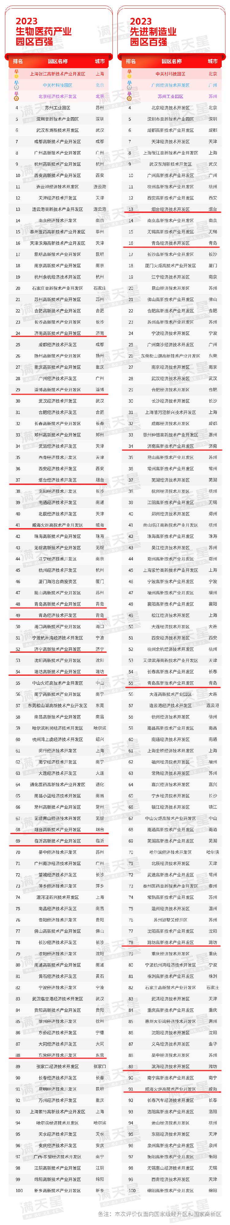 與去年相比,青島經(jīng)濟(jì)技術(shù)開發(fā)區(qū)排位上升1位(去年第18位),濟(jì)南高新技術(shù)產(chǎn)業(yè)開發(fā)區(qū)排位保持不變(去年第19位),青島高新技術(shù)產(chǎn)業(yè)開發(fā)區(qū)排位上升2位(去年第29位),煙臺經(jīng)濟(jì)技術(shù)開發(fā)區(qū)排位下降3位(去年第25位),濰坊高新技術(shù)產(chǎn)業(yè)開發(fā)區(qū)排位下降1位(去年第46位),威;鹁娓呒夹g(shù)產(chǎn)業(yè)開發(fā)區(qū)排位下降6位(去年第52位),淄博高新技術(shù)產(chǎn)業(yè)開發(fā)區(qū)排位上升1位(去年第71位)。