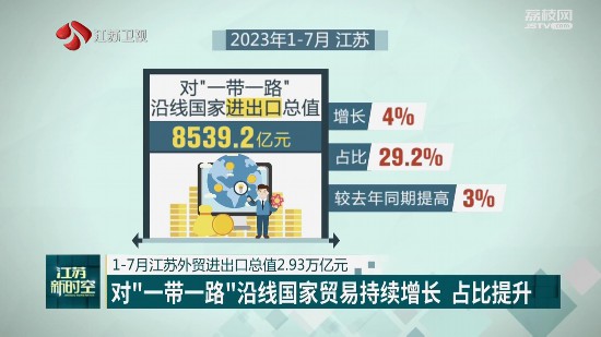 1—7月,江蘇對(duì)“一帶一路”沿線國家進(jìn)出口繼續(xù)保持增長,進(jìn)出口總值達(dá)8539.2億元,增長4%,占比較去年同期提高3個(gè)百分點(diǎn)。另外,對(duì)拉美和非洲進(jìn)出口分別增長2%和5%。民營企業(yè)進(jìn)出口增長明顯。1—7月,江蘇省民營企業(yè)進(jìn)出口1.28萬億元,增長4.4%,占比較去年同期提升4.6個(gè)百分點(diǎn)。同期,外商投資企業(yè)和國有企業(yè)分別進(jìn)出口1.39萬億元和2559億元。