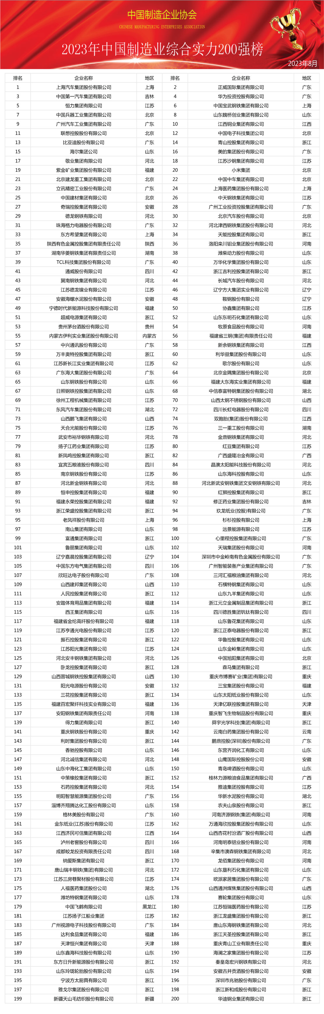 中國(guó)制造業(yè)綜合實(shí)力200強(qiáng)