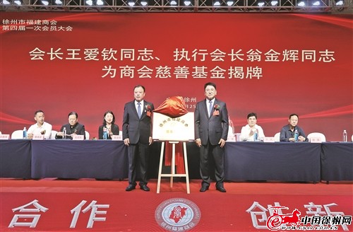 徐州市福建商會會長王愛欽、執(zhí)行會長翁金輝共同為商會慈善基金揭牌。