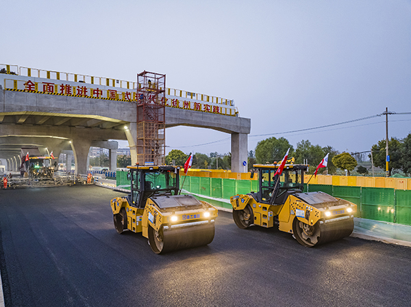 黃淮網(wǎng)(李坤) 10月31日,徐豐公路快速化改造工程先導標九里湖立交施工現(xiàn)場,在無人駕駛的攤鋪機、壓路機組成的施工集群作業(yè)下,經(jīng)過全體參建人員的努力奮戰(zhàn),隨著九里湖立交地面輔道瀝青混凝土路面攤鋪工程完成,宣告九里湖立交地面輔道工程主體完工。
