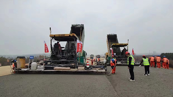 徐州東部繞越高速路面3標水穩(wěn)底基層試驗段攤鋪完成