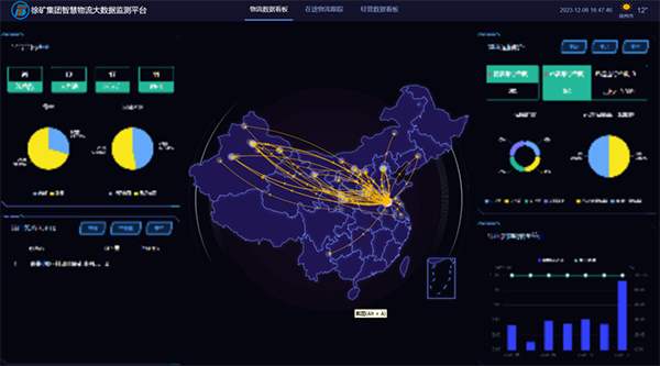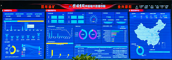 巨大的藍色電子屏攜帶著色彩鮮明的數(shù)據(jù)圖表涌入眼簾,餅狀圖、柱狀圖、折線圖,與躍動的數(shù)字交相呼應……這是徐礦集團物資供銷公司供應鏈大數(shù)據(jù)中心的實時畫面。