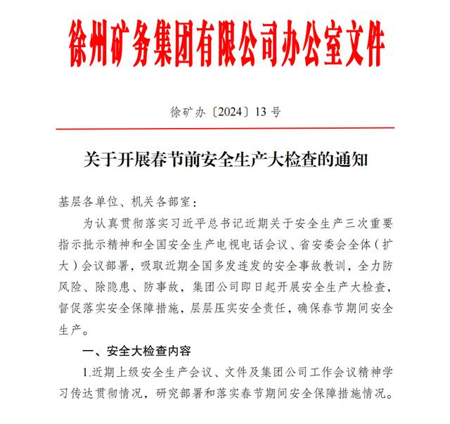 連日來,徐礦集團深入學(xué)習(xí)習(xí)近平總書記關(guān)于安全生產(chǎn)的重要指示精神,貫徹落實全國安全生產(chǎn)電視電話會議、省安委會全體(擴大)會議部署,開展全系統(tǒng)全方位安全生產(chǎn)大檢查,確保全集團、全區(qū)域、全產(chǎn)業(yè)鏈全面安全生產(chǎn)。