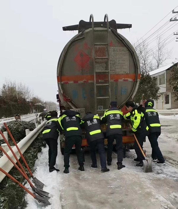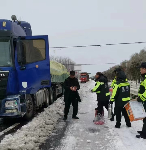 黃淮網(wǎng)(晏金躍) 受強(qiáng)冷空氣影響,2月20日夜間以來,徐州市連續(xù)遭遇冰粒、凍雨、雨夾雪、大雪等寒潮低溫惡劣天氣。104國(guó)道官山收費(fèi)站主動(dòng)擔(dān)當(dāng)作為,組建黨員突擊隊(duì),充分發(fā)揮黨員先鋒模范帶頭作用,及時(shí)救助遇困車輛,切實(shí)保證廣大司乘出行安全。積極做好延伸服務(wù),對(duì)滯留在站區(qū)附近的車輛免費(fèi)提供方便面、火腿腸等食品和開水,提醒滯留人員注意安全和保暖。