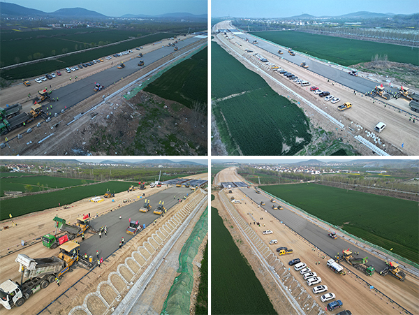 徐州東部繞越高速公路XM-LM1標(biāo)完成水穩(wěn)底基層試驗(yàn)段試鋪