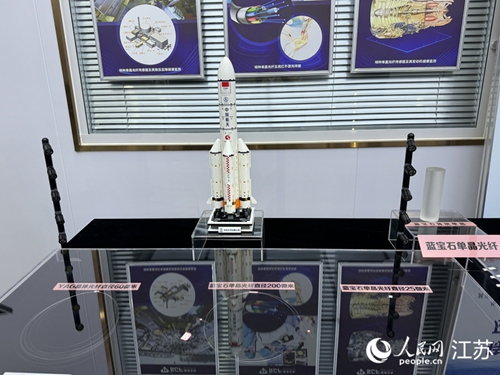 技術(shù)員展示直徑22微米單晶光纖,粗細(xì)僅有頭發(fā)絲的四分之一。人民網(wǎng) 楊維瓊攝