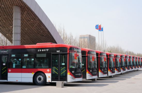 中通客車出口智利895臺(tái)純電動(dòng)客車首批下線。