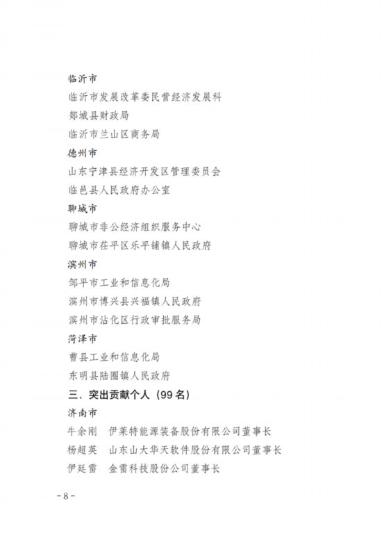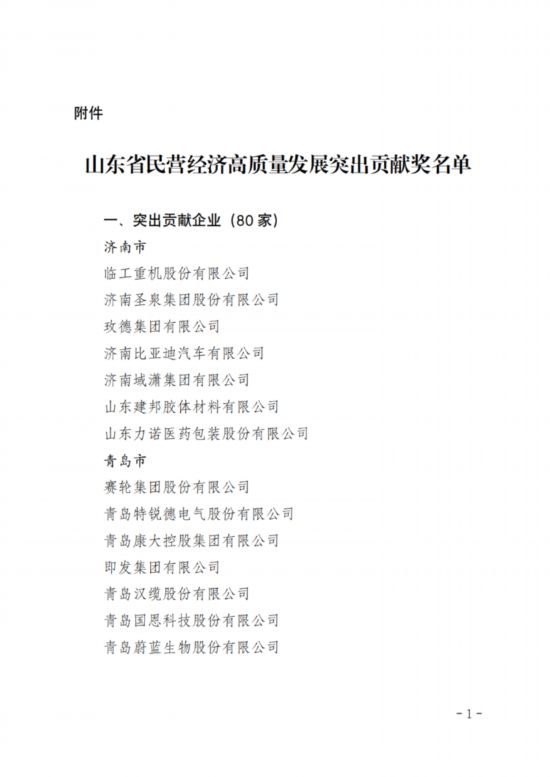 山東省民營(yíng)經(jīng)濟(jì)高質(zhì)量發(fā)展突出貢獻(xiàn)獎(jiǎng)名單公布