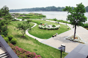 記者了解到,為進一步拓展城市水空間,新沂市擬用兩年的時間將環(huán)繞主城區(qū)的沭河、新戴河、城中引河、臧圩河等沿河景觀工程有機地融為一體,打造“城市水環(huán)”,構(gòu)建博愛的沭河、碧玉的引河、浪漫的新戴河、生態(tài)的臧圩河,使新沂成為一座城水相依的秀美之城。“城市水環(huán)”總長度約10公里,集區(qū)域綠道、城市公園、旅游景點三大角色于一身,機動車道、自行車健身道、濱河游步道、觀光游船等四條主線貫通全程。從空中俯瞰,河畔宛如一道碧綠的絲帶,綠樹花草中掩映著花鳥游園、森林氧吧、棧橋濕地、運動舞吧、精品會所、流光碼頭、水岸酒吧等功能分區(qū),沿岸的秀美水景,讓追求完美的現(xiàn)代人有了沉醉的感覺。