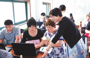 農(nóng)民在學(xué)習(xí)利用電子商務(wù)平臺銷售農(nóng)產(chǎn)品。